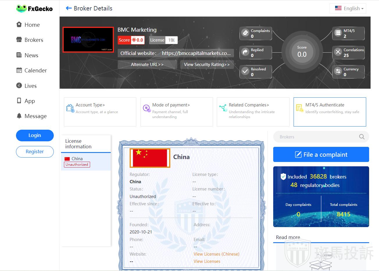 This broker is called BMC Marketing, which has been established for one year and ranks 4546 in the world.At present, there is no foreign exchange license,and the risk scan shows 19 risks.Investors need to pay attention to relevant risks.
