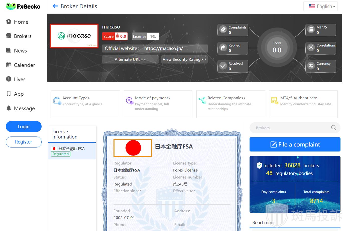 FTI risk warning shows that macaso has 16 risks. Investors need to pay attention to the relevant risk alerts for this broker.