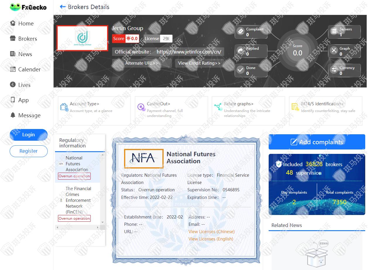 This broker is called Jertin Group, which has been established for one year and ranks 1781 in the world. At present, there are two foreign exchange licenses, and the risk scan shows two risks. Investors need to pay attention to relevant risks.