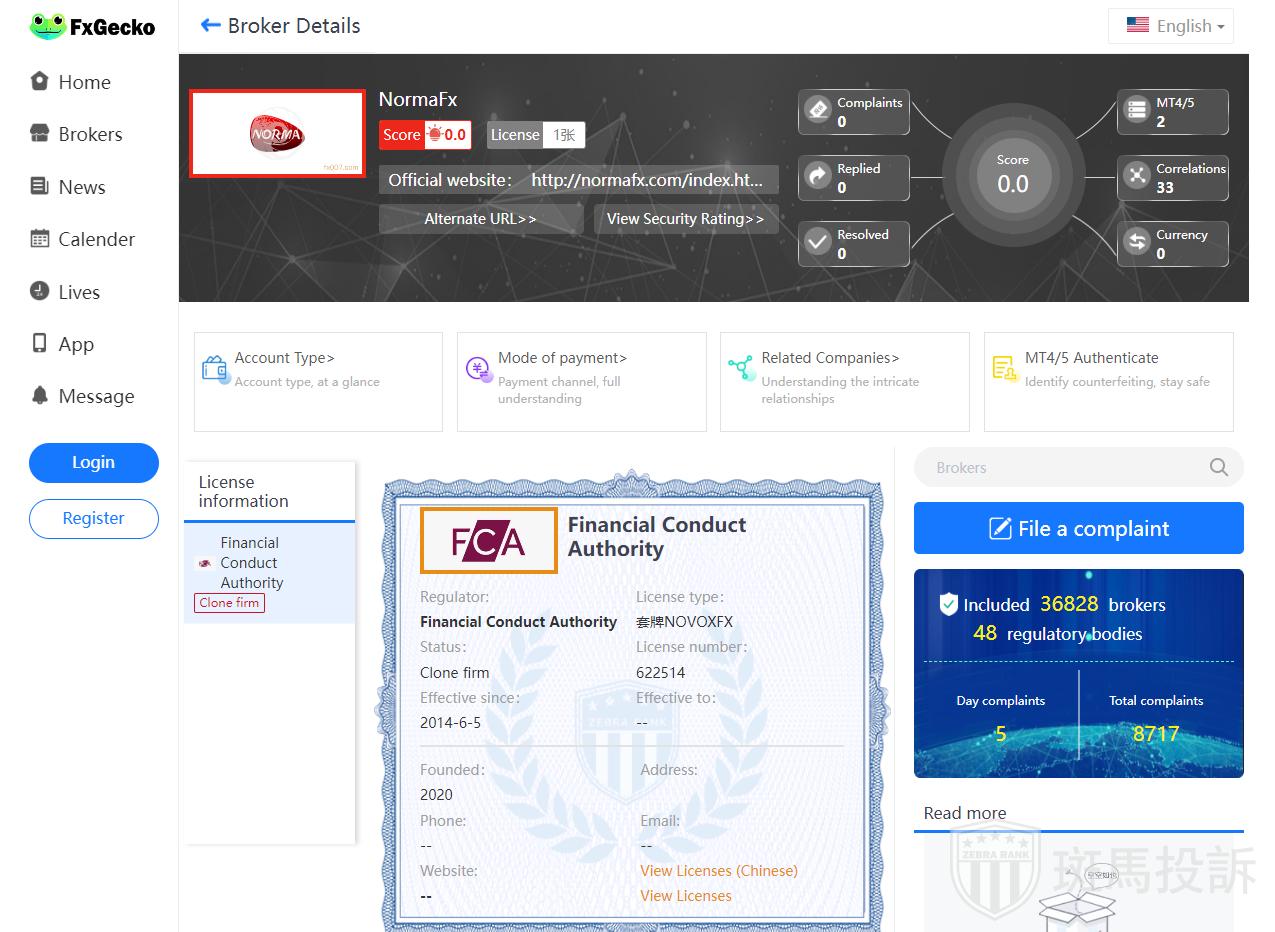The NormaFx platform applies the regulation of the UK FCA, which provides the regulatory certificate number: 622514, which is confirmed to be owned by other platforms.