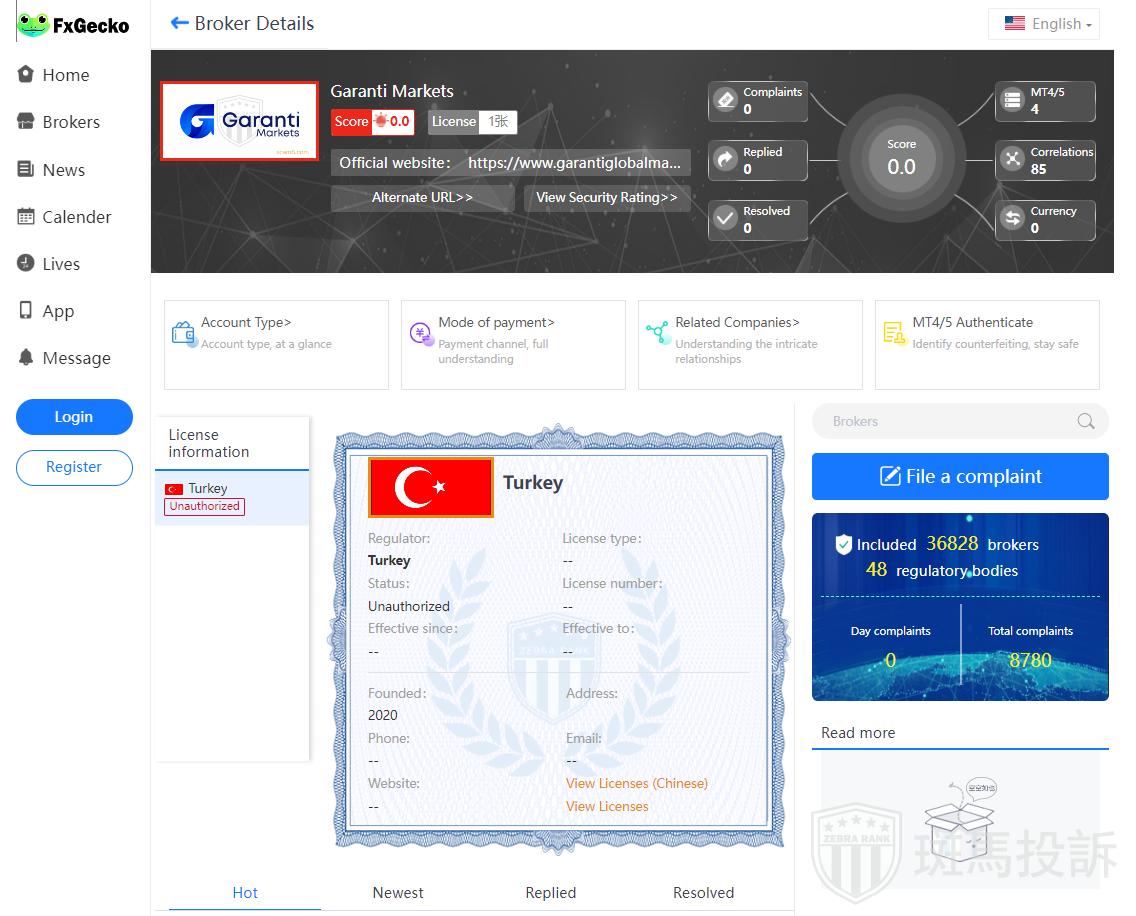 FTI has not received any complaints about Garanti Markets forex broker at the moment.