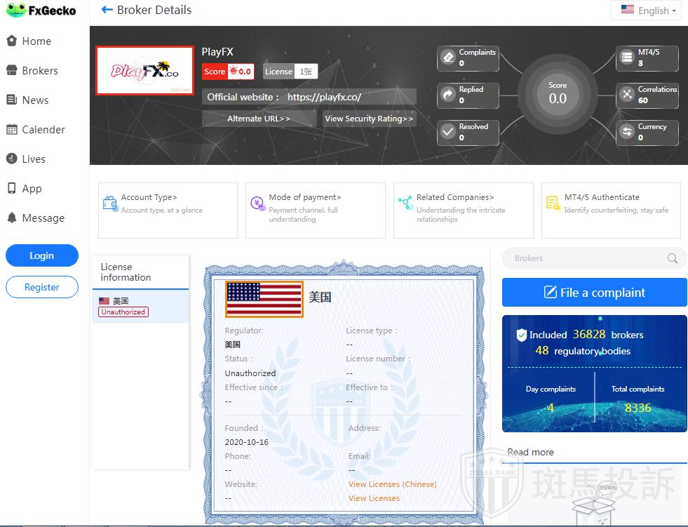 This broker is called PlayFX, which has been established for one year and ranks 4424 in the world. At present, there are 0 foreign exchange licenses, and the risk scan shows 30 risks. Investors need to pay attention to relevant risks.