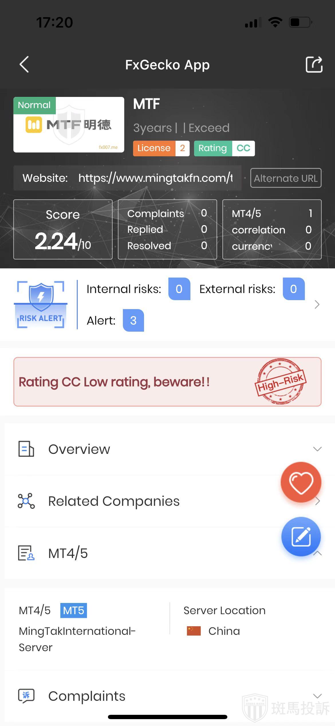 FTI risk warning shows that 明德金融MTF has 3 risks. Investors need to pay attention to the relevant risk alerts for this broker.