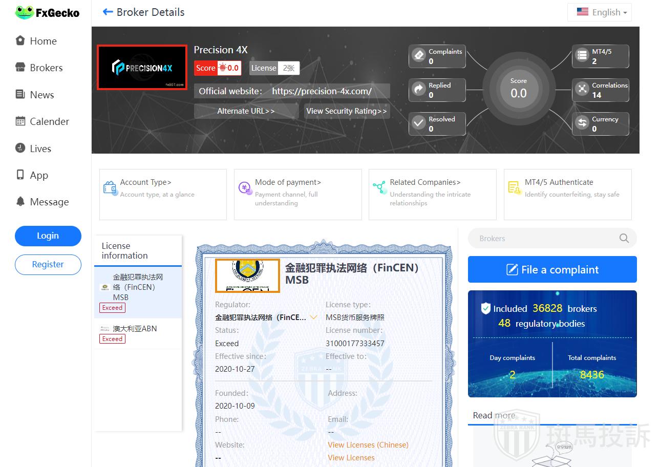 This broker is called Precision 4X, which has been established for one year and ranks 1906 in the world.At present, there is no foreign exchange license,and the risk scan shows 8 risks.Investors need to pay attention to relevant risks.