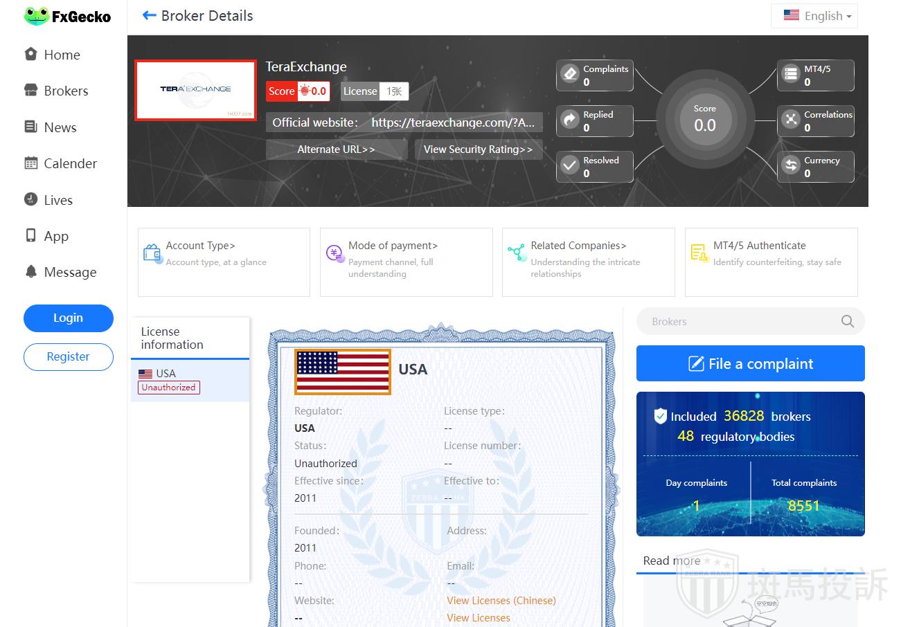 Currently, no valid regulatory information has been found for TeraExchange, which is a high risk sign, beware!