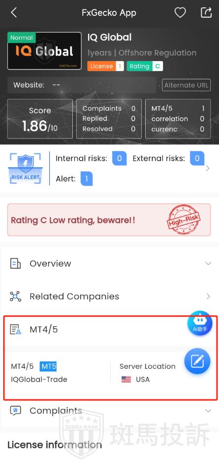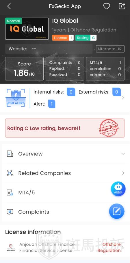 FTI risk warning shows that IQ Global has 1 risks. Investors need to pay attention to the relevant risk alerts for this broker.
