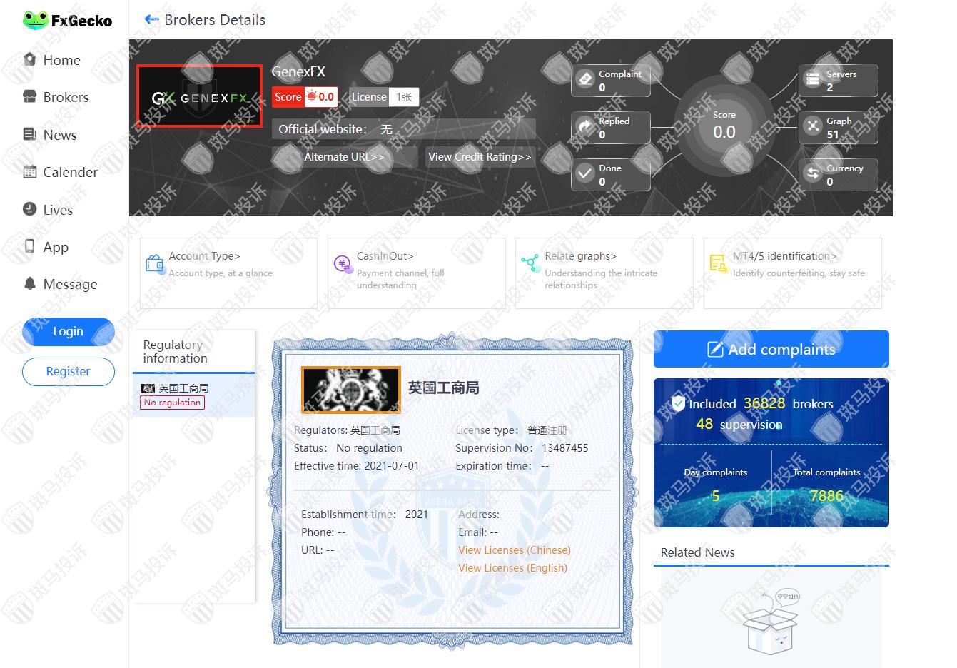 This broker is called GenexFX which was founded less than 2 year ago and is ranked 2118 in the world. At present, there are 0 foreign exchange licenses, and the risk scan shows 15 risks. Investors need to pay attention to relevant risks.