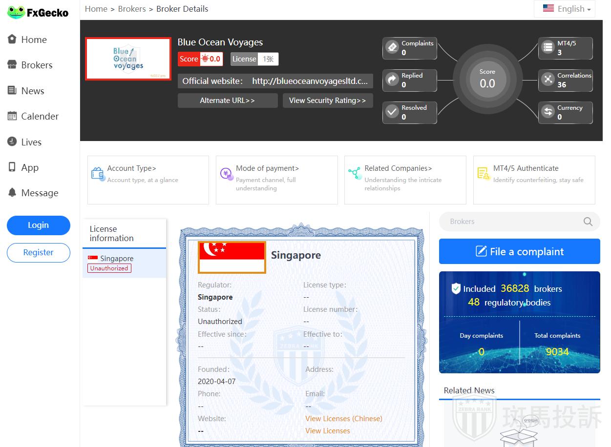 FTI risk warning shows that Blue Ocean Voyages has 40 risks. Investors need to pay attention to the relevant risk alerts for this broker.